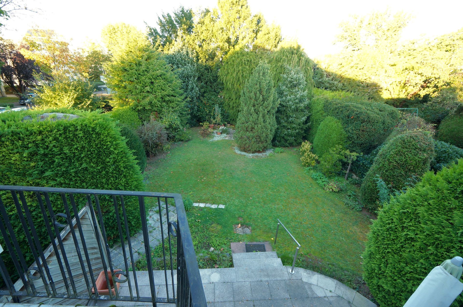 Die Immobilie bietet zwei großzügige Terrassen zur Gartenseite, die zu gemütlichen Stunden unter freiem Himmel einladen. Eine zusätzliche kleinere Terrasse im Vorgarten ermöglicht sogar die letzten Strahlen der Abendsonne zu genieße. Die neben dem Haus stehende Garage bietet nicht nur Schutz für Ihr Fahrzeug, sondern auch zusätzlichen Stauraum für Gartengeräte und mehr.